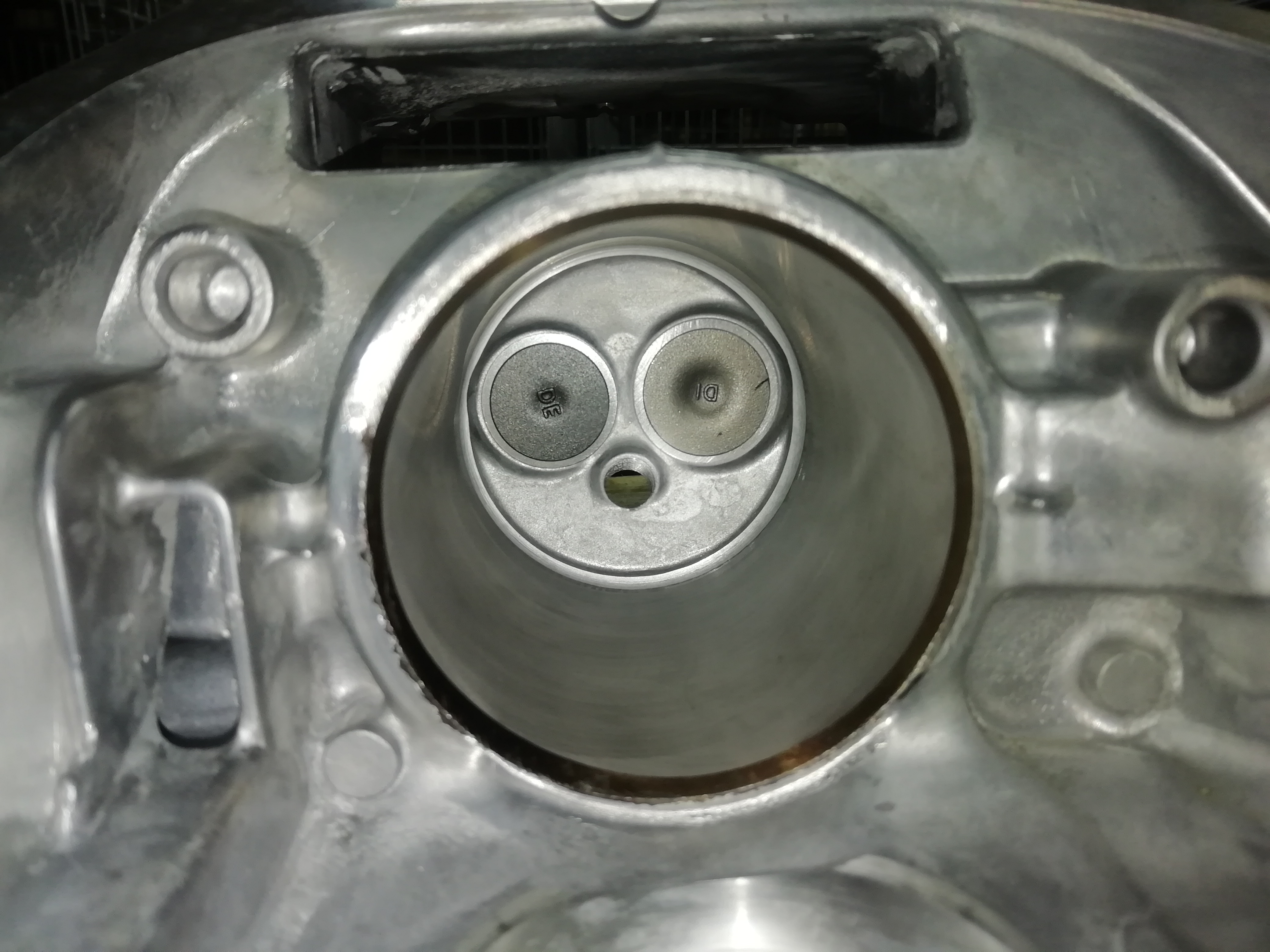 燃料室に吸排気バルブを組み込みます、新品なんでピカピカです