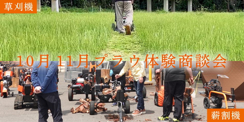 株式会社プラウでは、10月から11月にかけて、各地で「草刈機クサノザウルス・薪割機 体験商談会」を開催いたします。