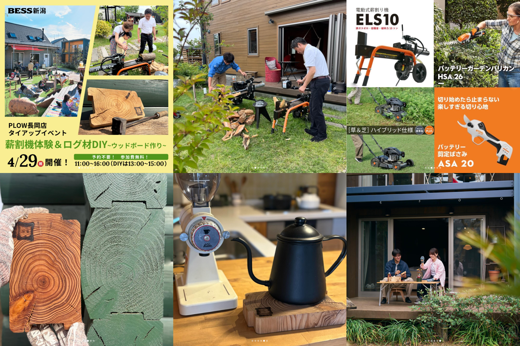 4/29|プラウ長岡店|薪割り機体験&ログ材DIY! BESS新潟とのタイアップイベント開催