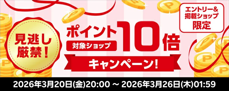 2026年3月20日(金) 20:00より、楽天市場にて「対象ショップポイント10倍キャンペーン」が開催されます。