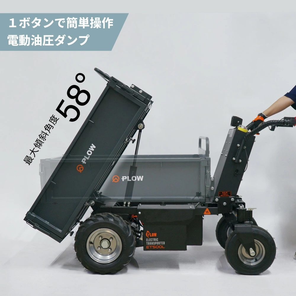 - ・スイッチ操作一つで荷台が昇降する電動ダンプ機能を備えており、荷下ろし作業が簡単かつ効率的に完了