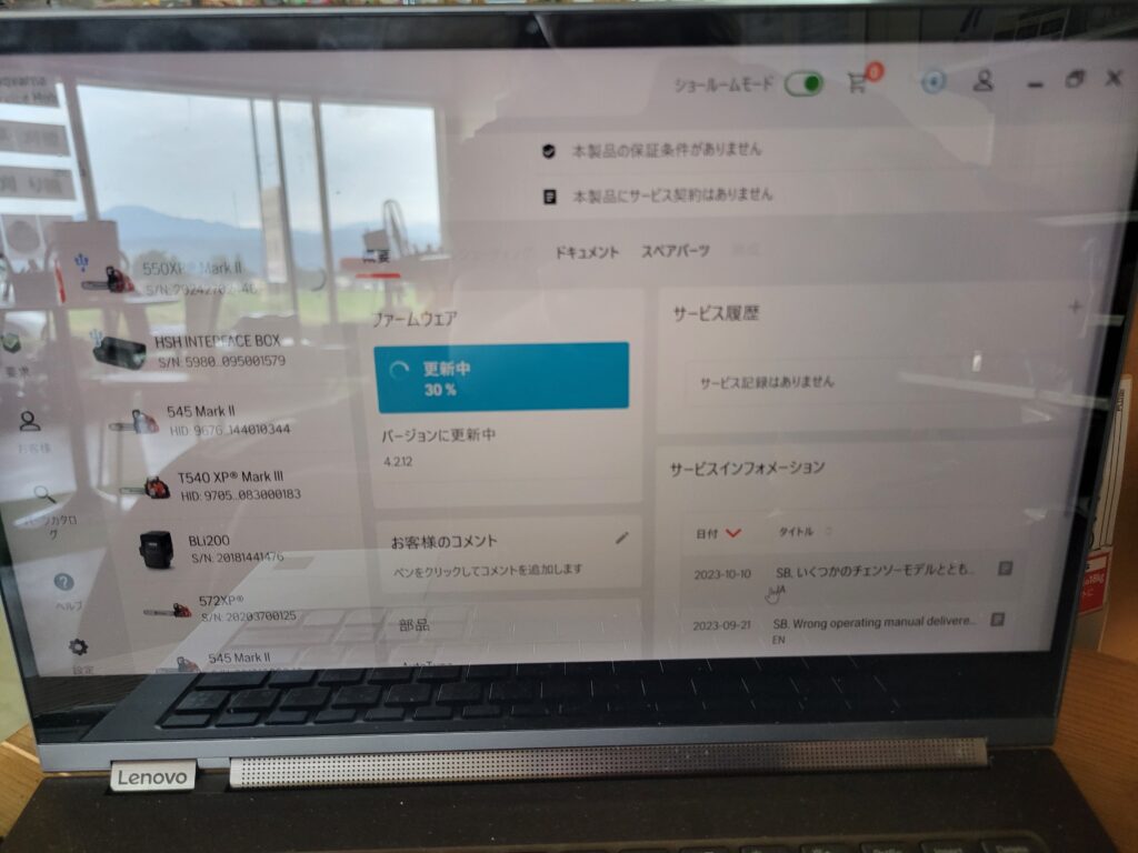 ソフトを使って電装系のアップデート、診断をしていきます。
