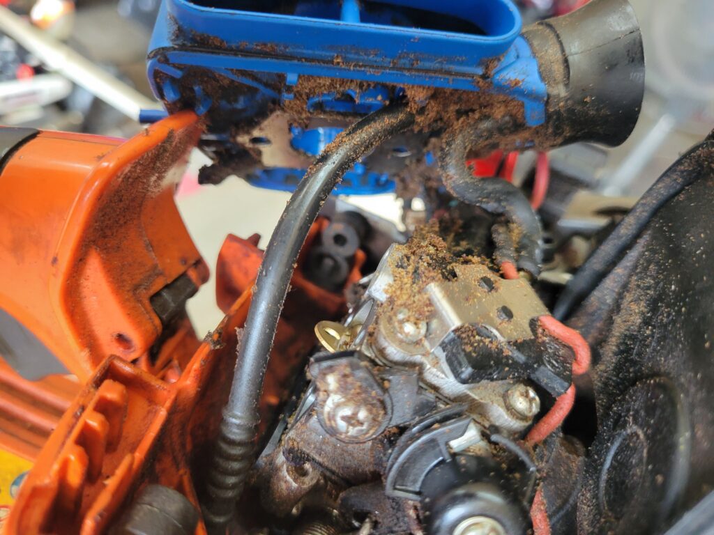 エアクリーナーカバーなどを外してキャブレターガスケットなどを点検していきます。