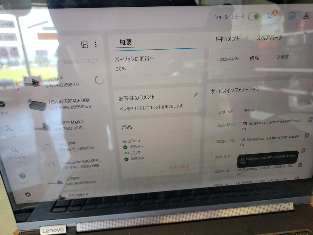 Hubの診断機に繋げて電気系統の診断をしていきます。