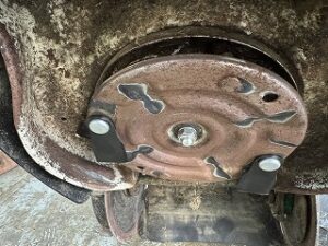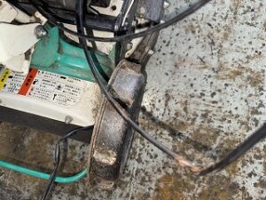 しかしフリーナイフがカッターデッキに当たって火花が出るので変形したカッターデッキを修正しました。火花が出なくなり正常に動作確認しました。修理完了です。
