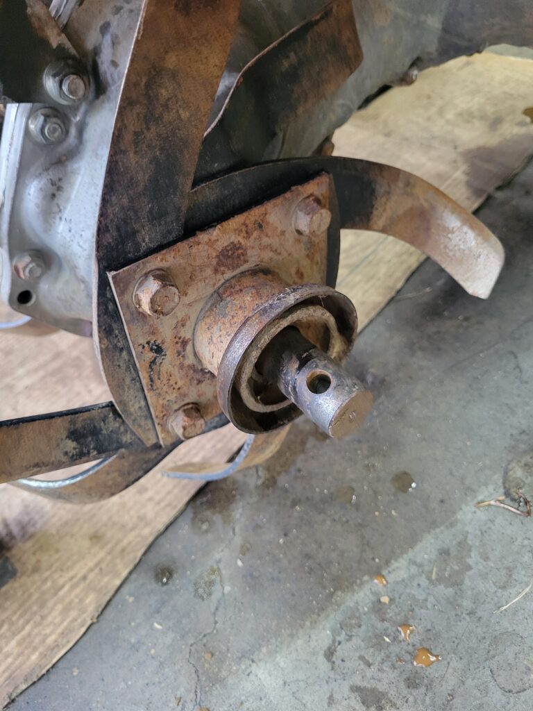 外してみると、取り付け部分に草やゴミがかなり挟まってしまっていてシャフト部分に錆が………