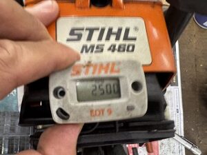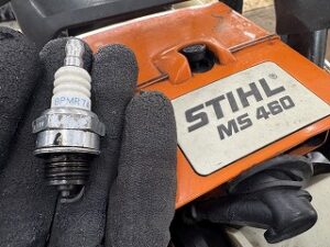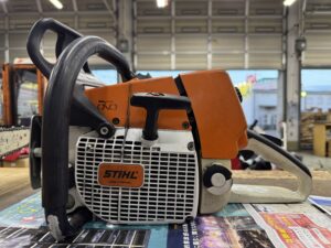 PLOW長岡店の柳です。STIHL MS460RHDエンジンかかるけどアイドリング回転数が高いという症状で持ち込みされました。現象確認するとスターターを1回引いて初爆あり、ハーフチョークでエンジンかかり全開になりスロットルレバーを握って離すとアイドリングせずエンストしました。何回やっても同じでした。