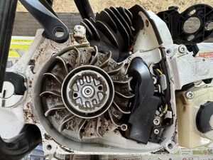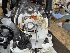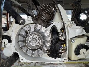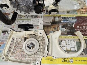 PLOW長岡店の柳です。MS261C-MVW修理受注しました。スターターを取り外して清掃開始します。