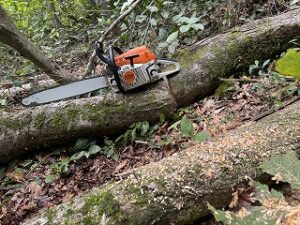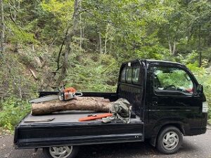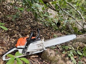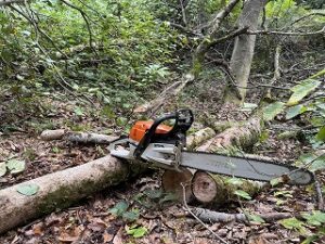 PLOW長岡店の柳です。STIHL MS261C-MVWの試し斬りするため実家の山に持ってきました。