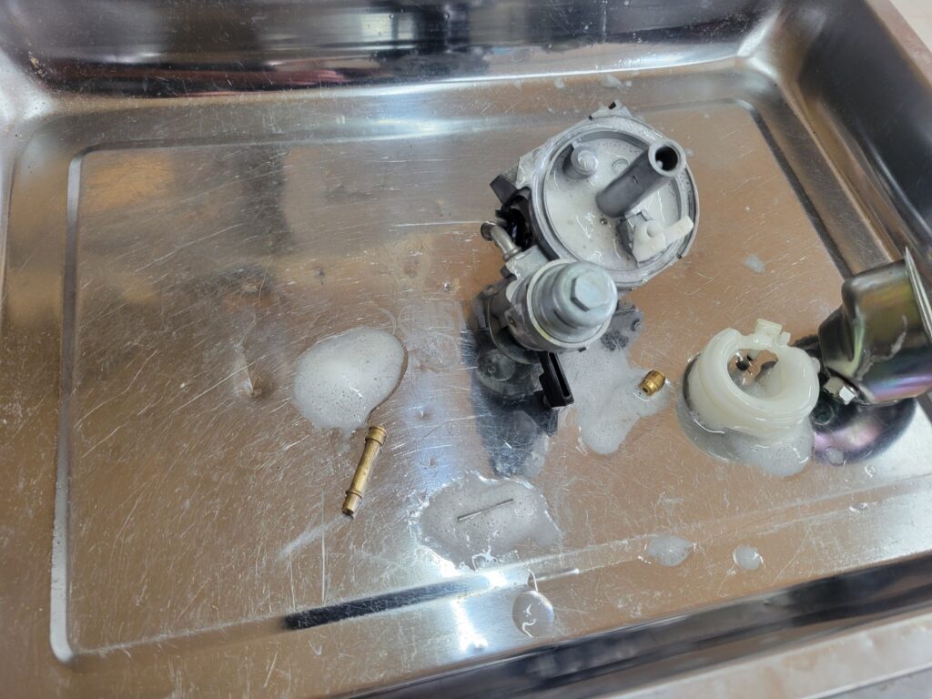 キャブを確認したところ燃料が変色して劣化してるのが分かりました。