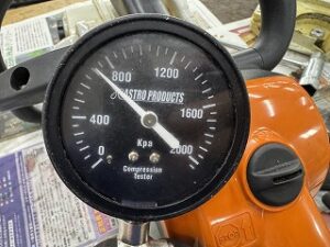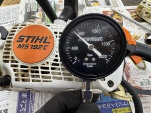 圧縮圧力を点検すると710Kpaでした。かなり低いです。