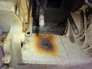 PLOW長岡店の柳です。MS230C-BEのチェンオイル漏れる箇所を特定しました。