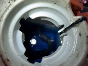 入っていたのは他社製エンジンオイルでした。この燃料では始動不能だったので工場内の燃料(STIHL純正エンジンオイル使用)に抜き替えてみると