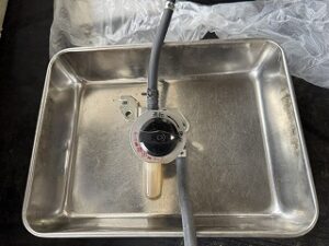 燃料タンクから燃料コックに繋がるホースに亀裂があるので交換します。