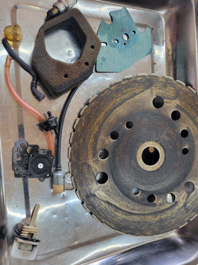 キャブ劣化、燃料ホース、グロメット劣化となります。