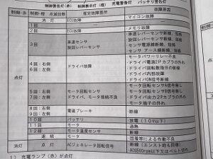 制御-赤点灯、制御表示灯-橙8回点滅する場合は、右側電磁ブレーキ断線と書かれていますが現象が起こるまで右側走行モーターは正常に動作しているのを確認したので故障していません。