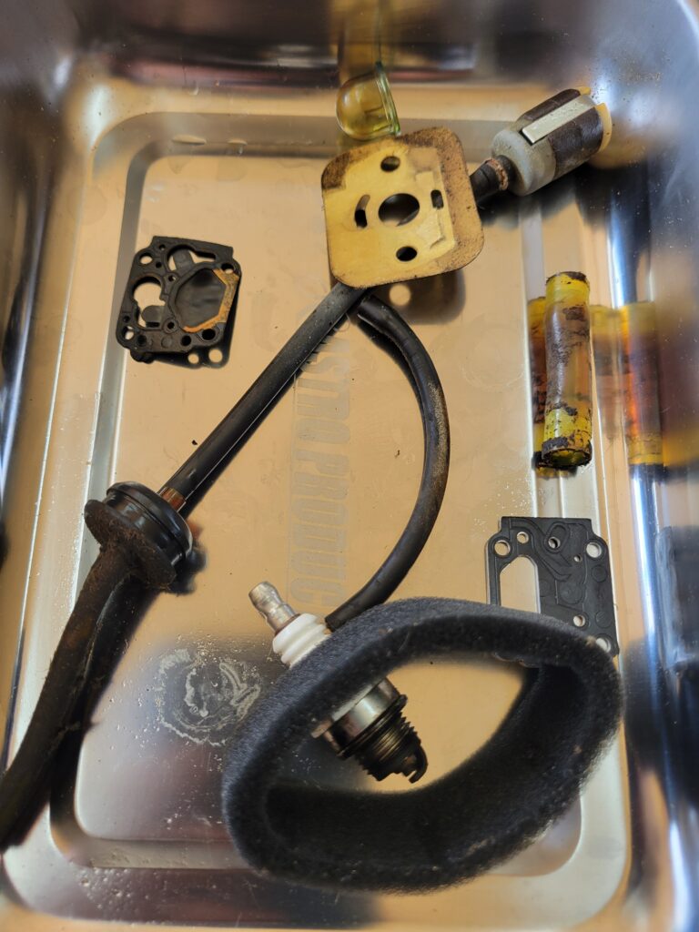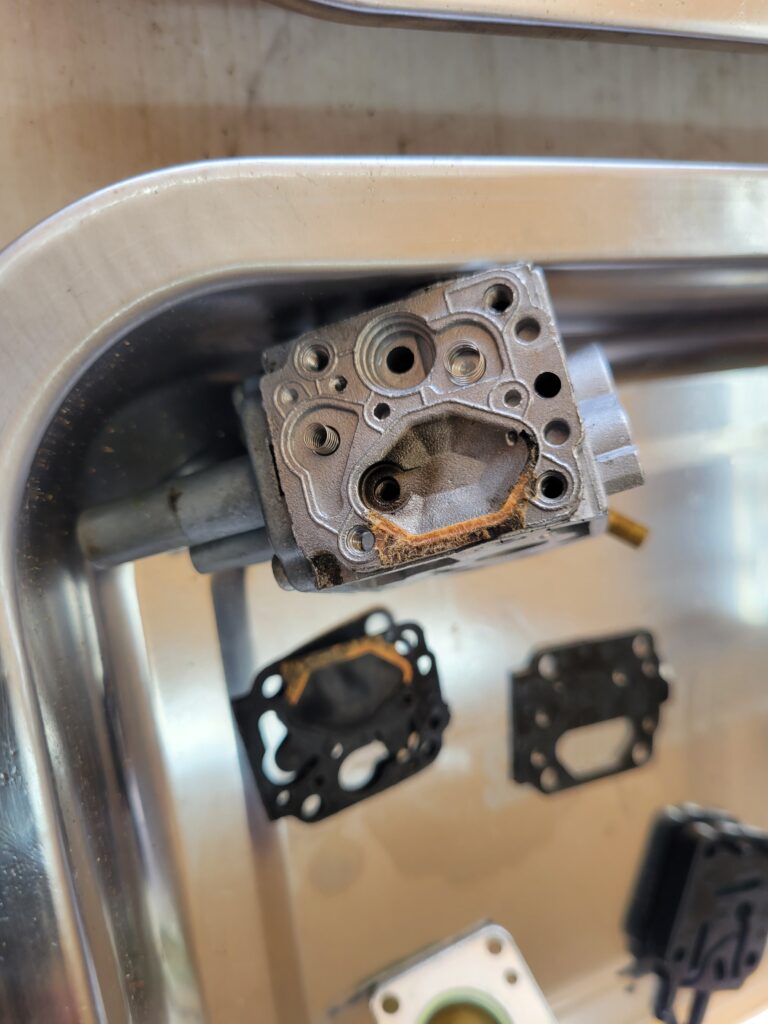 燃料ホース劣化、キャブガスケット固着が原因となります。