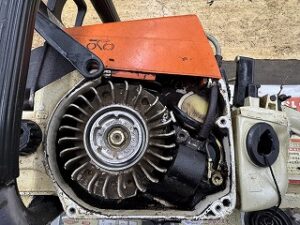 STIHL 034AV SUPER タンクハウジング破損修理、津南町から持ち込みされました。