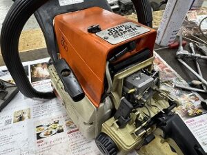 PLOW長岡店の柳です。STIHL 034AVSEQ(034AV SUPER)のキャブレター分解清掃を開始します。