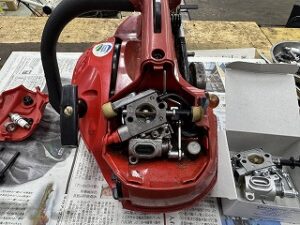 PLOW長岡店の柳です。ゼノアGZ3500T修理受注しました。キャブレターオーバーホールする金額とキャブレターASSY交換する2通り見積もりしましたがほぼ同じだったのでASSY交換になりました。