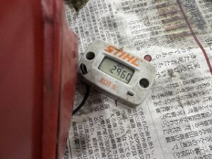 始動確認しました。1回引いて初爆、2回目でエンジン始動しました。アイドリング回転数、最高回転数まで正常に吹け上がります。