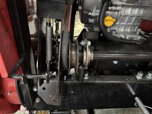PLOW長岡店の柳です。WADO SMX1392 雪が詰まる症状で引き取りしました。Vベルトが摩耗限界でクラッチを入れてもベルトが緩いです。