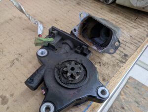 むき出しのギアからモーター内に水が入ってサビてしまったのかと思います。