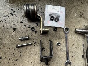 オーガベルト、ACGベルト交換、電磁クラッチ隙間調整、ベルト張り調整をして組み付けます。