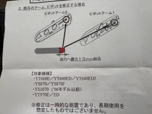 純正サイズは供給終了していますが現行機種のクローラのサイズが大きいのでアーム,ピボットを加工することで取り付け可能です。