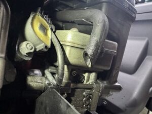オイルが噴き出した場所はブリーザーホースからでした。オイル量過多により余分なオイルがブリーザーホースから排出されます。