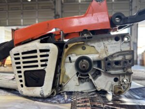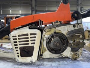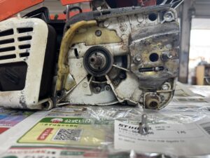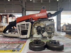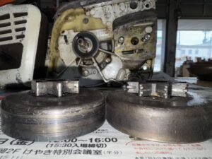PLOW長岡店の柳です。STIHL 041AV修理の続きです。クラッチを取り付けると直結してしまうのでスプロケットを加工します。↑は加工前