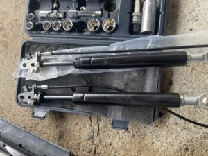 バッテリーの奥に見えるガスダンパーを交換します!