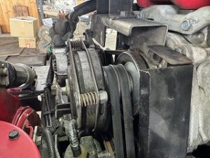 ブロアー、オーガミッションをハウジングに組み付けてフレームに取り付けます。この後ベルト交換して完成しました。