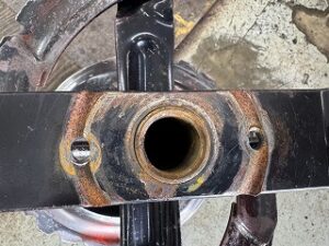 オーガのシャーボルト穴が長穴になっています。ステンレス製のボルトを使うと折れにくくなる代わりにオーガに負荷がかかります。