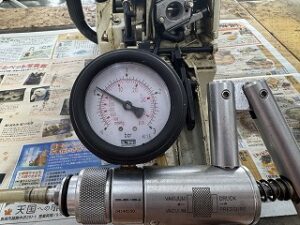 キャブレター漏れテスト結果はNG、0.8barを維持できず針がすぐに下がってしまいました。キャブレターオーバーホール必要です。お客様に見積もりして修理受注しました。