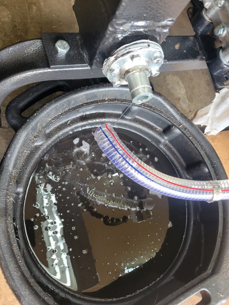 油圧オイルを抜いてオイルフィルターの清掃をしていきます。