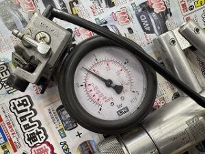 キャブレター漏れテストをすると0.8barから針が下がってしまいました。NGです。オーバーホール必要です。