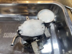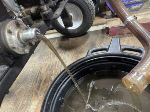 まずは、機体前方を持ち上げながらオイルを抜いていきます!