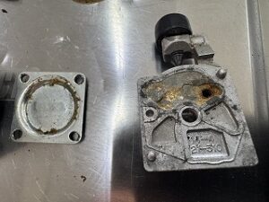 インレットニードルバルブが摩耗しています。限界線オレンジ色が見えます。