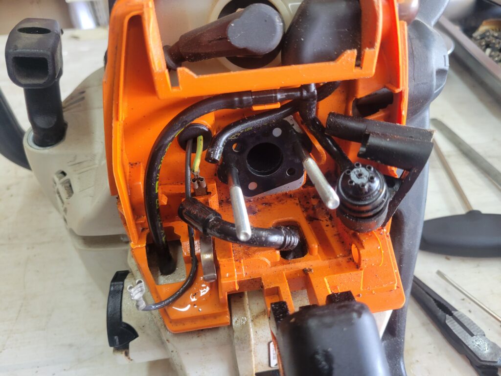 STIHL MS230C クラッチ破損、キャブ清掃の修理のご依頼がありました。