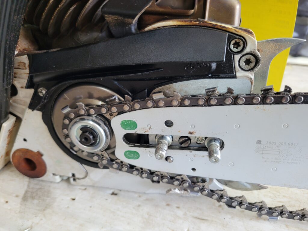 ガイドバー、ソーチェーンを取り付けて始動確認。
